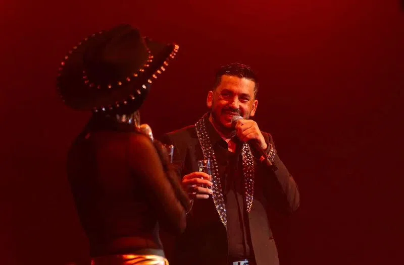 Al subir al escenario el “Nuevo Rey de la Banda”, después de saludar a la soprano, interpretaron exitos cómo: “El que te amo” y “Si se quiere ir” lo que hizo que el ánimo del público subiera hasta el tope. Intercambiando comentarios agradables que terminaron por divertir al público asistente.
